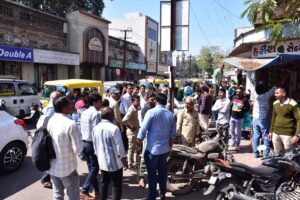 વેપારીઓએ પોતાની દુકાનો થોડા સમય માટે બંધ રાખી હતી અને સમગ્ર વિસ્તારમાં પોલીસનો કડક બંદોબસ્ત જોવા મળ્યો હતો.