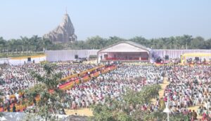 પરિસરમાં સમાજના અગ્રણીઓ, સ્થાનિક આગેવાનો, ટ્રસ્ટીઓ અને હજારો લોકોની ભીડ જોવા મળી હતી.