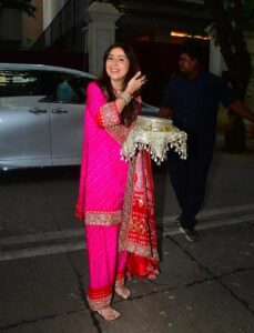 અનન્યા પાંડેની માતા ભાવના પાંડે પણ આ ઉજવણીમાં તેજસ્વી દેખાતી હતી. તેમણે પેસ્ટલ પિંક રંગનો કુર્તા-સલવાર સેટ પહેર્યો હતો, જેમાં નાજુક ઝરદોઝી કારીગરી હતી. સોફ્ટ ટોનના આ લુકે સાબિત કર્યું કે ઉત્સવ માટે ચટક રંગ જ જરૂરી નથી — સૌમ્યતા પણ ઉત્સવી થઈ શકે છે. ભાવનાના લુકમાં ગોલ્ડન ઝુમકા, નાના બિન્દી અને હળવો મેકઅપ હતો, જે તેમને ખૂબ એલીગન્ટ બનાવી રહ્યો હતો.