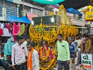 રથમાં માતાજીની પ્રતિમા સ્થાપિત કરીને તેને વિશેષ રીતે શણગારવામાં આવી હતી. ભક્તો રથની આગળ ચાલતા અને માતાજીના જયઘોષ સાથે યાત્રાને આગળ વધારતા હતા.