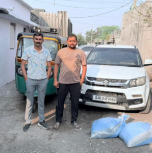 થોડી જ વારમાં શંકાસ્પદ હાલતમાં એક કાર તથા એક રીક્ષા ત્યાંથી પસાર થતી દેખાતા પોલીસએ બંને વાહનોને અટકાવી તપાસ હાથ ધરી. શરૂઆતમાં ચાલકો દ્વારા ગેરમાર્ગે દોરવાના પ્રયાસો થયા હોવા છતાં પોલીસે કાયદેસરની કાર્યવાહી કરતા બંને વાહનોની તલાશી લેવામાં આવી.