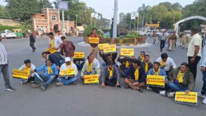 રાજેન્દ્રસિંહ સોઢા અને પ્રકાશ દોંગાની આગેવાની હેઠળ કાર્યકરો પોતાના પક્ષના ધ્વજ સાથે નારેબાજી શરૂ કરી.