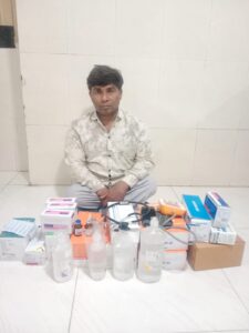 દરોડા દરમિયાન પોલીસે ત્યાં હાજર વ્યક્તિ પાસેથી પૂછપરછ કરી અને તેની ઓળખ બિહાર રાજ્યના નૌહટા ગામના નથુની ઉર્ફે મનીષ જગદીશ પાસવાન તરીકે થઈ. તપાસ દરમિયાન સામે આવ્યું કે તે માત્ર દસ ધોરણ પાસ છે અને કોઈ મેડિકલ ડિગ્રી ધરાવતો નથી, છતાં છેલ્લા દસ વર્ષથી એલોપેથીક દવાઓ આપી લોકોની સારવાર કરી રહ્યો હતો. પોલીસે સ્થળ પરથી અલગ-અલગ પ્રકારની એલોપેથીક દવાઓ, ઈન્જેક્શન, સિરિન્જ, ગ્લુકોઝ સેટ, બ્લડ પ્રેશર માપવાનું યંત્ર સહિતના મેડિકલ સાધનો મળી કુલ રૂ. ૫૧,૬૫૫નો મુદ્દામાલ જપ્ત કર્યો હતો.