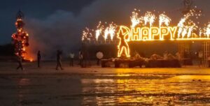 ભારે વરસાદ છતાં, હજારો લોકોએ ગ્રાઉન્ડમાં ખાંભા ચડાવીને રાવણ દહન અને આતિશબાજી નિહાળી. -