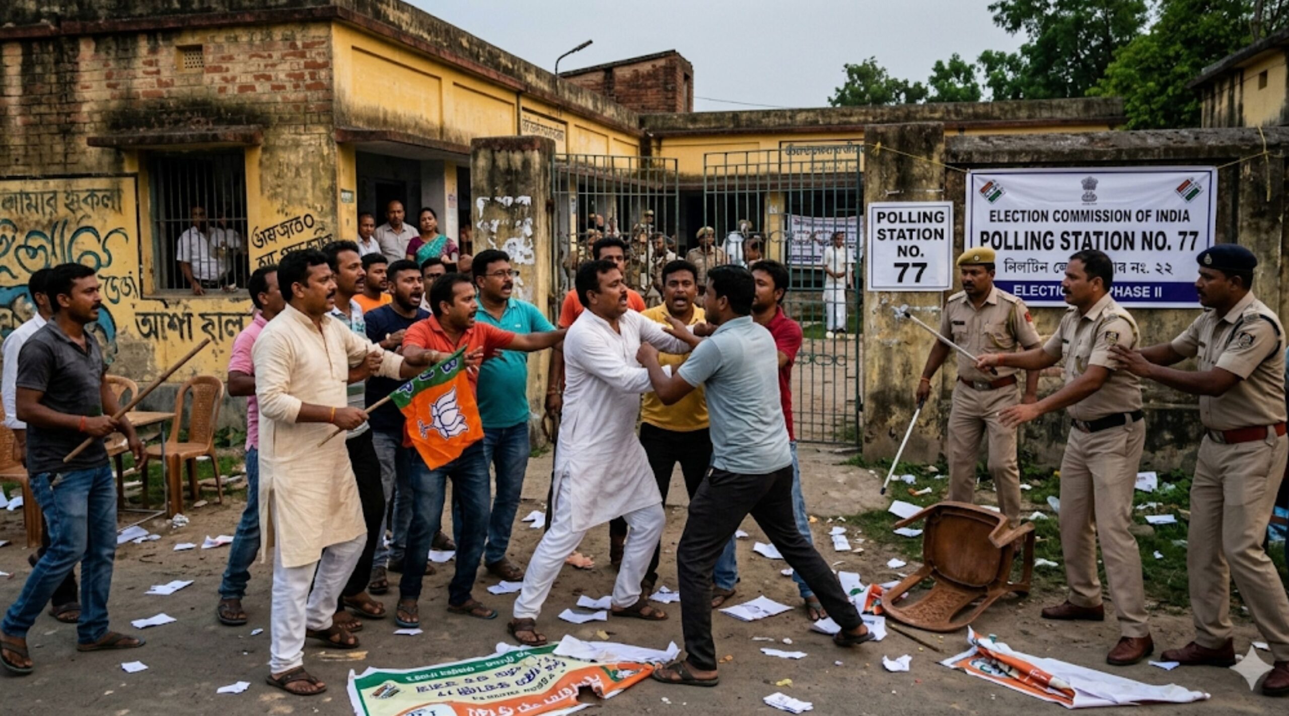 પશ્ચિમ બંગાળ વિધાનસભા ચૂંટણી 2026ના બીજા તબક્કાના મતદાન દરમિયાન રાજ્યના અનેક વિસ્તારોમાં તણાવ, હિંસા, EVM ગડબડ અને રાજકીય ટકરાવના બનાવોએ લોકશાહી પ્રક્રિયા પર ગંભીર પ્રશ્નો ઉભા કર્યા છે. મતદાનના દિવસે 77 જેટલા બૂથો પર હિંસક અથડામણ, મારામારી, બૂથ કબ્જા, EVM સાથે છેડછાડના આક્ષેપો અને મતદારોને ભ્રમિત કરવાની ફરિયાદો સામે આવતા ભારતીય જનતા પાર્ટીએ ચૂંટણી પંચ સમક્ષ આ બૂથો પર ફરી મતદાન (રી-પોલ) યોજવાની સત્તાવાર માંગણી કરી છે. સૂત્રો મુજબ, ભારતના ચૂંટણી પંચ દ્વારા આ મુદ્દે ગુરુવારે મહત્વપૂર્ણ નિર્ણય લેવામાં આવી શકે છે. પશ્ચિમ બંગાળ જેવી રાજકીય રીતે અતિસંવેદનશીલ ધરતી પર મતદાન પ્રક્રિયા દરમિયાન ઉભા થયેલા આ વિવાદોએ માત્ર રાજ્ય નહીં, પરંતુ સમગ્ર દેશનું ધ્યાન ખેંચ્યું છે.