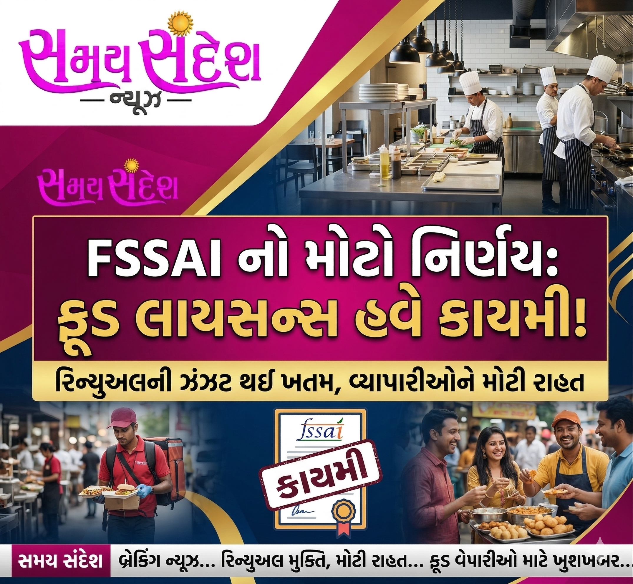 દેશના લાખો ખાદ્ય વ્યવસાયકારો માટે એક મહત્વપૂર્ણ અને રાહતભર્યો નિર્ણય લેવામાં આવ્યો છે. Food Safety and Standards Authority of India (FSSAI) દ્વારા નવા નિયમો જાહેર કરવામાં આવ્યા છે, જેમાં ફૂડ-લાઇસન્સ અને રજિસ્ટ્રેશનને હવે કાયમી (લાઇફટાઇમ) માન્યતા આપવામાં આવી છે. આ નિર્ણયથી નાના-મોટા તમામ ખાદ્ય વ્યવસાયો—જેમ કે રેસ્ટોરાં, હોટલ, સ્ટ્રીટ ફૂડ વેચાણકારો અને નાના ફૂડ સ્ટૉલ્સ—માટે એક મોટો ફેરફાર આવશે.