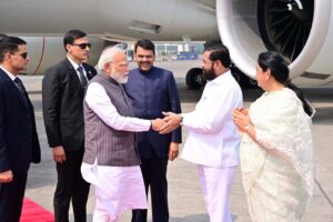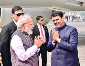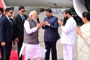મુંબઈ: દેશના વડાપ્રધાન Narendra Modi આજે મુંબઈ પહોંચતા મહારાષ્ટ્રના મુખ્યમંત્રી Devendra Fadnavis દ્વારા તેમનું ઉષ્માભર્યું સ્વાગત કરવામાં આવ્યું હતું. આ પ્રસંગે રાજ્યના ઉપમુખ્યમંત્રી Eknath Shinde, ઉપમુખ્યમંત્રી Sunetra Pawar, મંત્રીમંડળના સભ્યો, વરિષ્ઠ અધિકારીઓ, જનપ્રતિનિધિઓ તેમજ મોટી સંખ્યામાં કાર્યકરો ઉપસ્થિત રહ્યા હતા. વડાપ્રધાનના આગમનને લઈને મુંબઈ શહેરમાં વિશેષ તૈયારીઓ કરવામાં આવી હતી અને સુરક્ષાની કડક વ્યવસ્થા ગોઠવાઈ હતી.