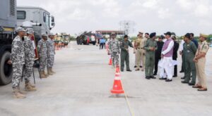 રાજ્યપાલશ્રીએ ભુજ એરફોર્સ સ્ટેશનમાં આયોજિત પ્રદર્શન દરમિયાન ફાઈટર એરક્રાફ્ટ્સ, જમીનથી હવામાં નિશાન તોડી પાડનારી મિસાઈલ સિસ્ટમ્સ, અદ્યતન રોહિણી રડાર સિસ્ટમ તથા ગરુડ સ્પેશિયલ ફોર્સના અદ્યતન હથિયારોની માહિતગાર મુલાકાત લીધી.