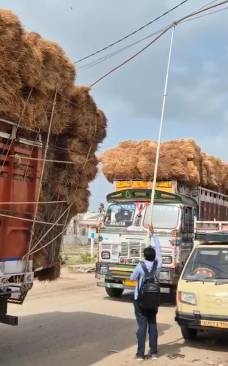 સ્થળ પર હાજર રહેલા UGVCLના હેલ્પરે પ્લાસ્ટિકના ડંડાની મદદથી જીવંત વાયરને ઊંચો કરી ટ્રક પસાર કરાવી, જે દૃશ્ય કોઈ ફિલ્મના જોખમી સીન સમાન લાગતું હતું. આ સમગ્ર દૃશ્ય સ્થાનિક લોકોએ મોબાઇલમાં કેદ કરી લીધું અને ત્યારબાદ વીડિયો વાયરલ થતા આખા શહેરમાં ચર્ચાનો વિષય બની ગયો.