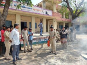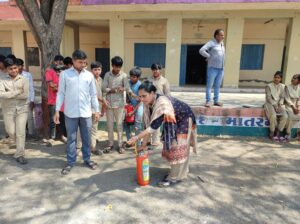 વિદ્યાર્થીઓને બતાવવામાં આવ્યું હતું કે આગ લાગવાની સ્થિતિમાં ફાયર એક્સટિંગ્વિશર કેવી રીતે ઉપયોગમાં લેવો.