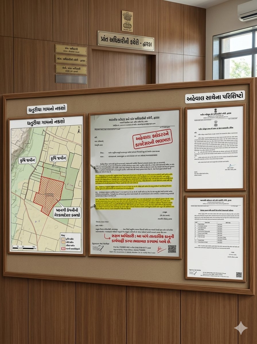 ધતુરીયા ગામની ખેતી અને ગૌચર જમીન પર ખાનગી કંપનીનો ગેરકાયદેસર કબજો: પ્રાંત અધિકારીનો અહેવાલ, કાયદેસર કાર્યવાહી માટે કલેક્ટરને ભલામણ.