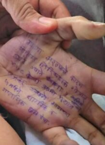 સ્થળ પરથી સુસાઇડ નોટ જેવી લખાણવાળી હથેળીની તસવીરો પણ મળી આવી. તેમાં બે નામ —