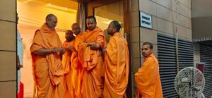 દાદર BAPS સ્વામિનારાયણ મંદિરના મહંત પૂજ્ય ભક્તિપ્રિય સ્વામી અને અન્ય સંતો રોજના નિયમિત ધાર્મિક કાર્યોથી થોડો વિરામ લઈને સવારે પ્રારંભિક મતદાન માટે દાદર ક્લબ ખાતે પહોંચ્યા.