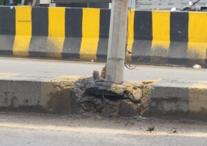 જામનગરમાં સ્વામી મહારાજ ઓવર બ્રિજ પર વીજ પોલ અર્ધતલે નમ્યો : વરસાદી માહોલમાં અકસ્માતની દહેશત, તંત્ર ચુપ