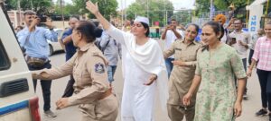 જામનગર લાલબંગલાથી કમિશ્નર કચેરી સુધી દંડવત કરીને પહોંચવાનો પ્રયાસ કરતી મહિલાની પોલીસે કરી અટકાયત
