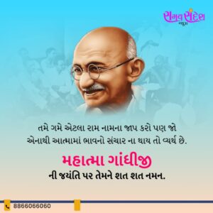 જામનગર, તા. ૨ ઓક્ટોબર :રાષ્ટ્રપિતા મહાત્મા ગાંધીજીની જન્મજયંતિ સમગ્ર રાષ્ટ્રભરમાં શ્રદ્ધા, આદર અને સન્માન સાથે ઉજવાય છે. ૨ ઓક્ટોબરનો દિવસ માત્ર ભારત જ નહિ પરંતુ...